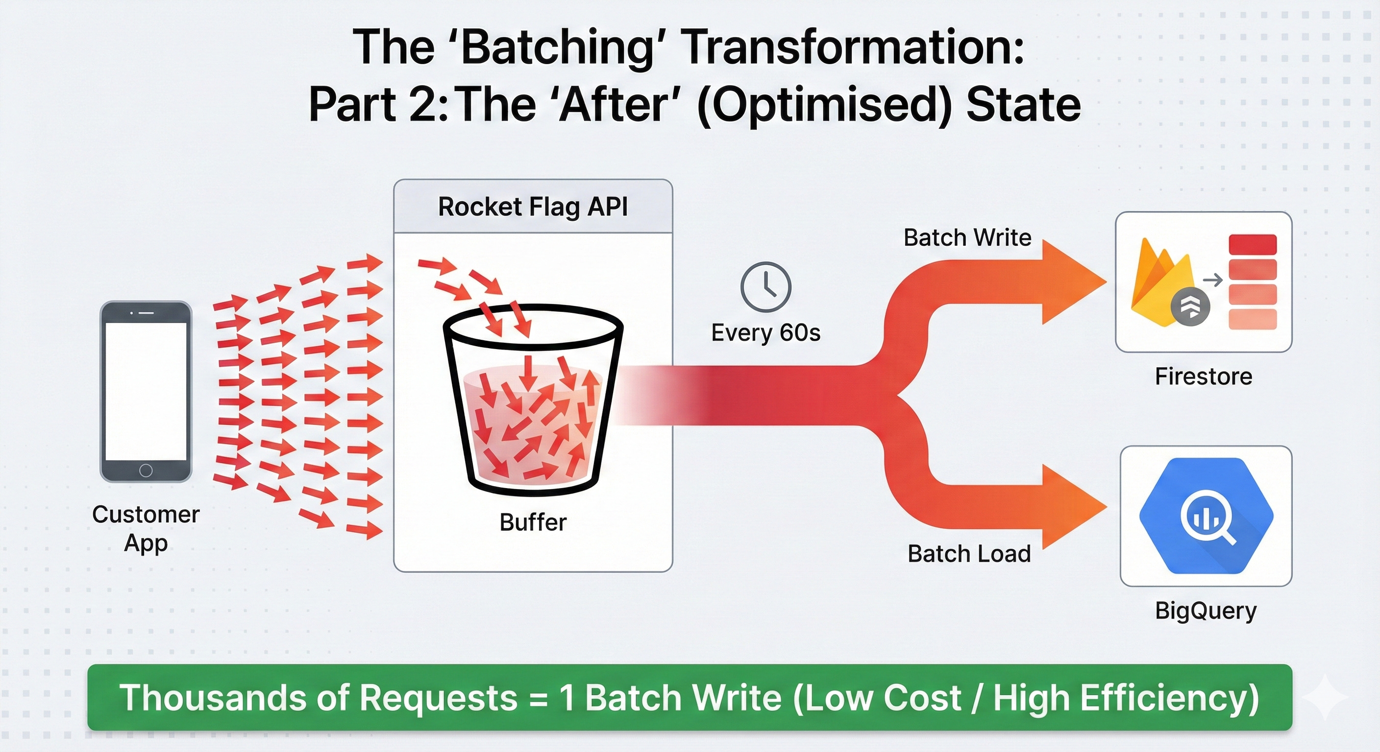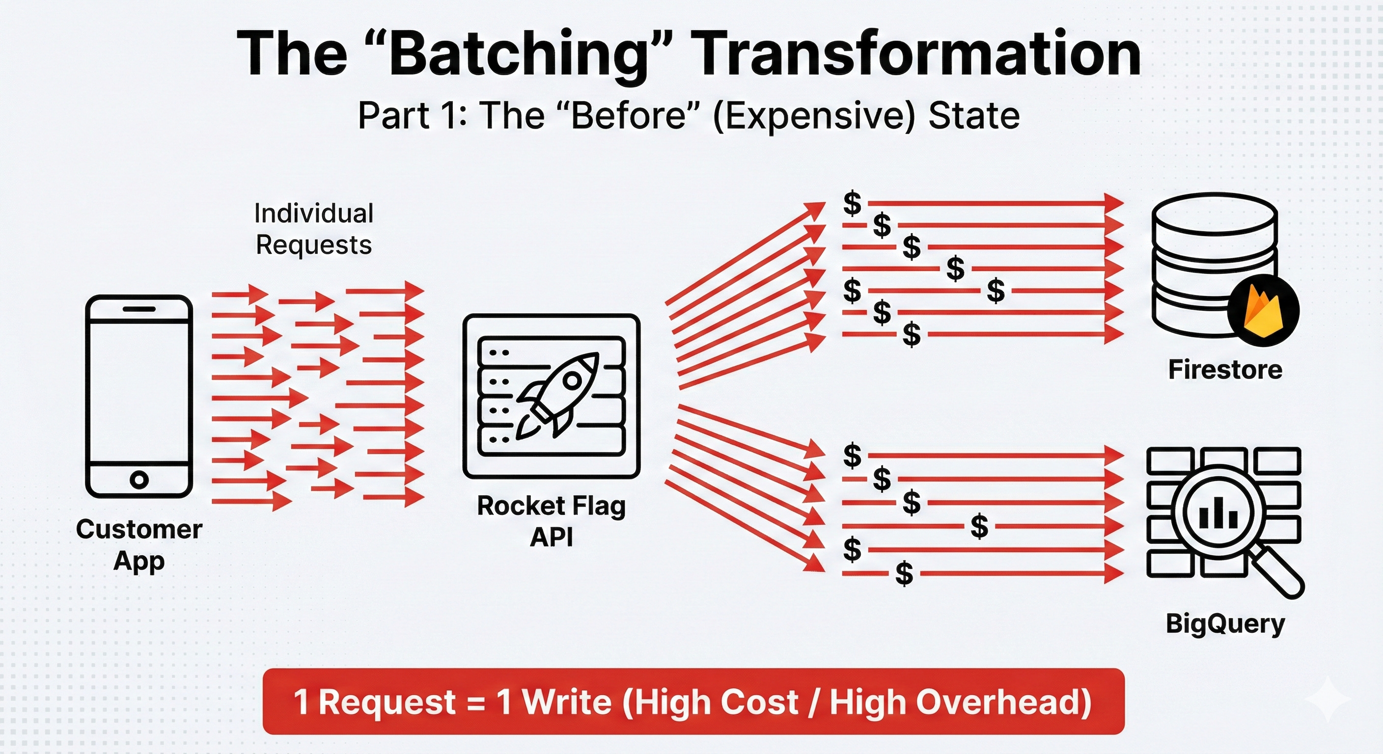 Cost Control: This was the big one. Instead of paying for 4,200 writes a minute (at peak), we are paying for a fraction of that by grouping updates.